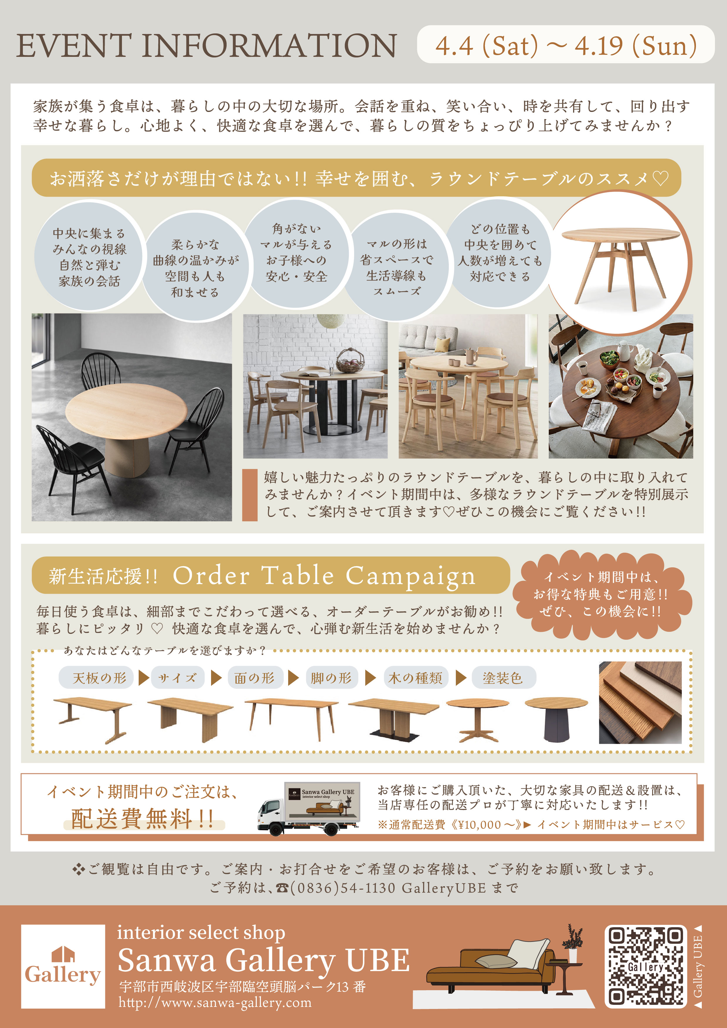 失敗しない為のテーブル選び、ぜひGalleryUBEにご相談下さい。